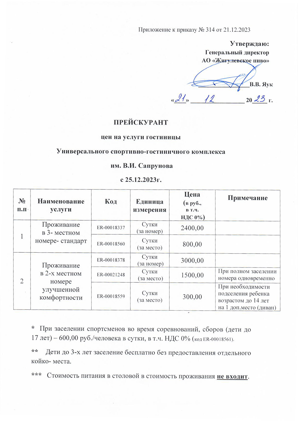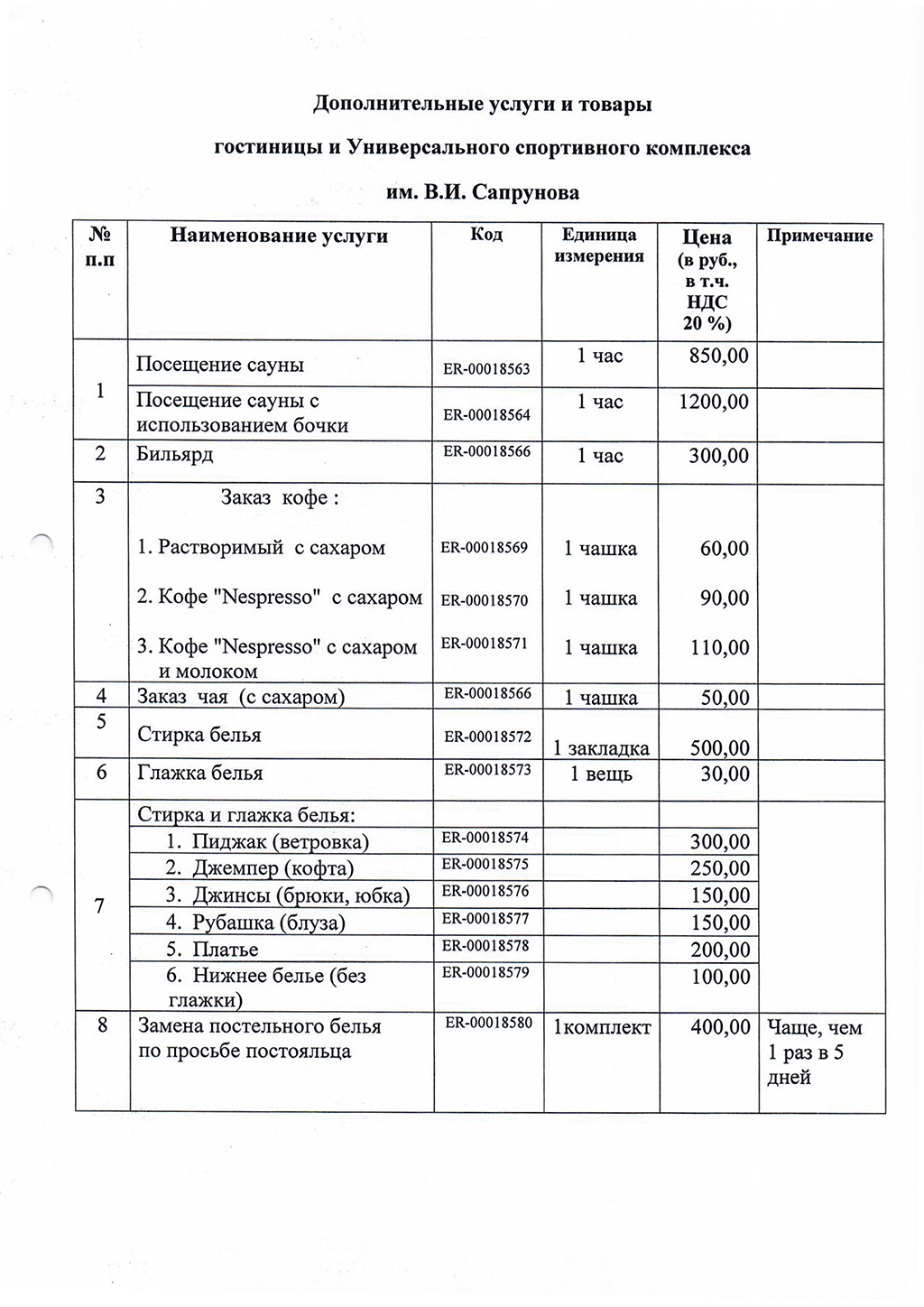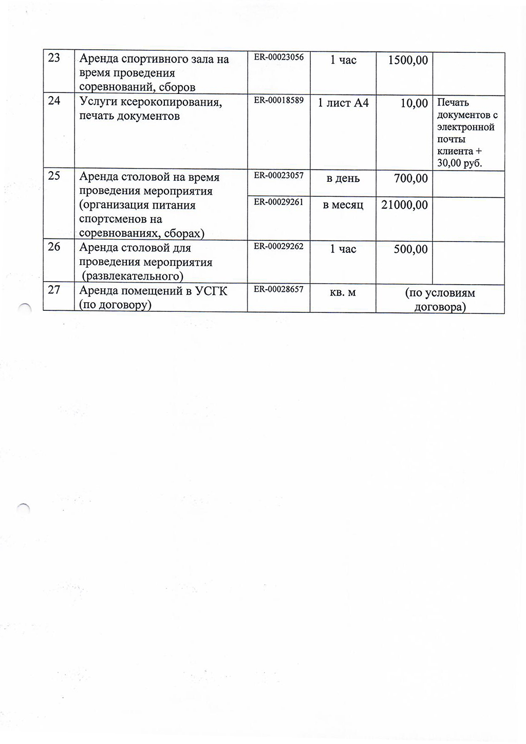 Услуги столовой- согласно Меню и Прейскуранту столовой